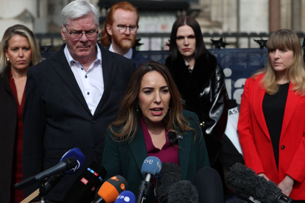 Stella Assange, the wife of WikiLeaks founder Julian Assange, delivers a speech outside The Royal Courts of Justice, Britain's High Court, in central London on March 26, 2024. (Photo by Daniel LEAL / AFP)
