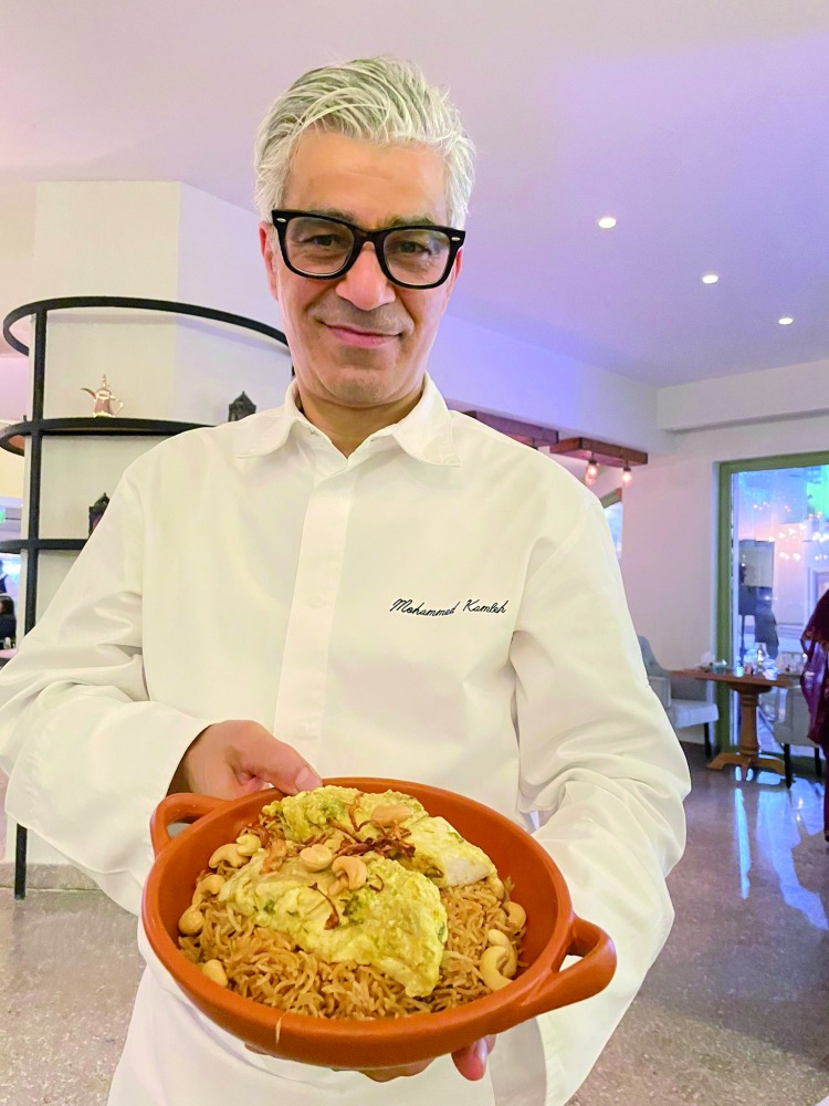Executive Chef Mohammed Kamleh holding the Seyadiya Samak main course