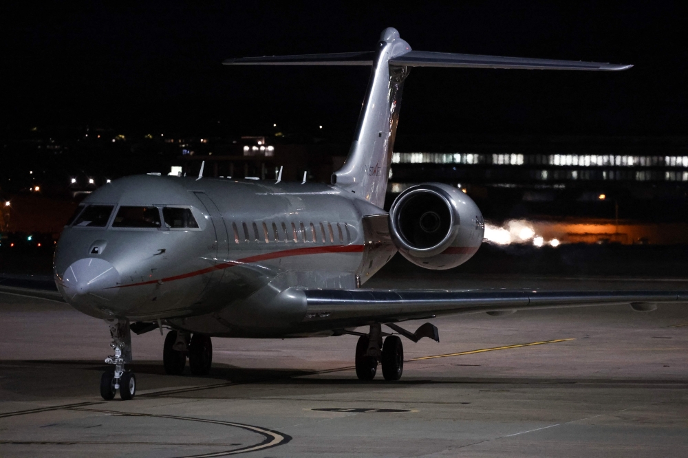 The plane carrying WikiLeaks founder Julian Assange arrives at Canberra Airport in Canberra on June 26, 2024. (Photo by David Gray / AFP)