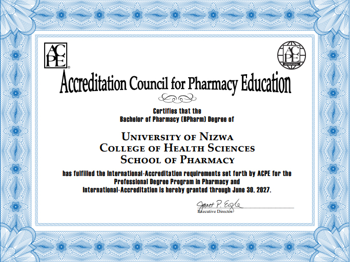 This achievement marks the first international accreditation of its kind for a pharmacy program in Oman, and the first program at the University of Nizwa to obtain such international recognition.