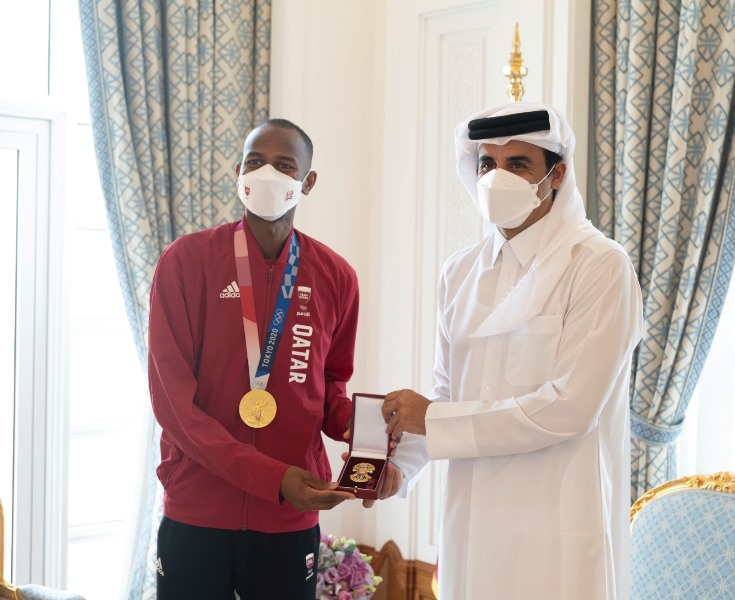 His Highness the Amir also awarded Olympic champion Mutaz Barshim the Al Wajbah Decoration, in recognition of his historic achievement by achieving three consecutive medals in Olympic participation and his distinguished representation of Qatari sport.