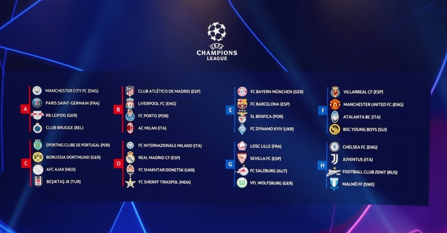 ISTANBUL - The following is the draw for the Champions League group stage which took place in Istanbul on Thursday: