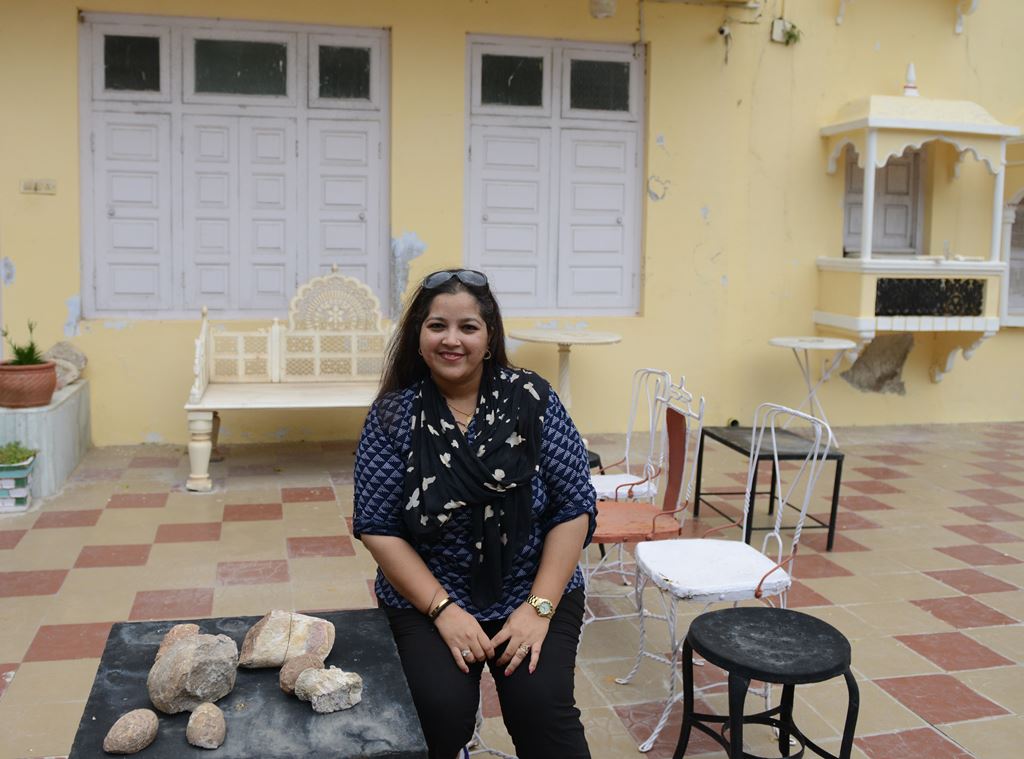 "Dinosaur Princess" Aaliya Sultana Babi posing with fossilised dinosaur eggs at her palace in Balasinor, some 100 kms from Ahmedabad. AFP / SAM PANTHAKY