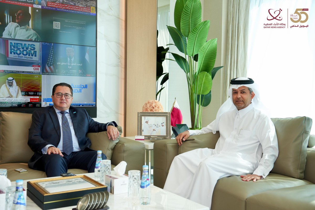 Doha, Qatar: Director-General of Qatar News Agency (QNA) HE Ahmed bin Saeed Al Rumaihi met today with Ambassador of the Republic of Kazakhstan to the State of Qatar HE Arman Issagaliyev. During the meeting, aspects of joint cooperation between the two countries in the field of media were discussed.