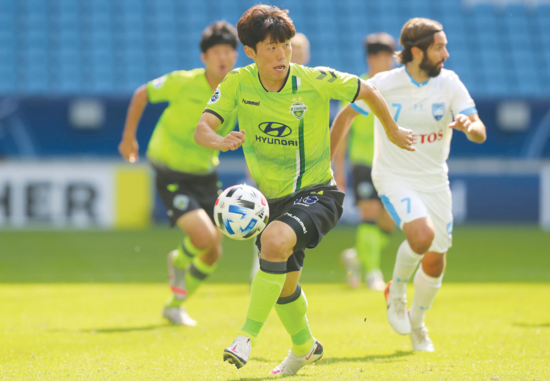 Jeonbuk’s defender Koo Ja-Ryong runs with the ball during match against Sydney FC at Al Janoub Stadium, yesterday.