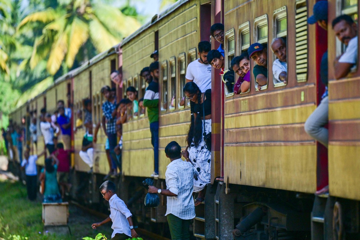 A train 'Queen of the Sea' arrives with family members of the victims on-board at a special memorial monument to commemorate the 20th anniversary of the 2004 tsunami, in Peraliya on December 26, 2024. Photo by Ishara S. KODIKARA / AFP