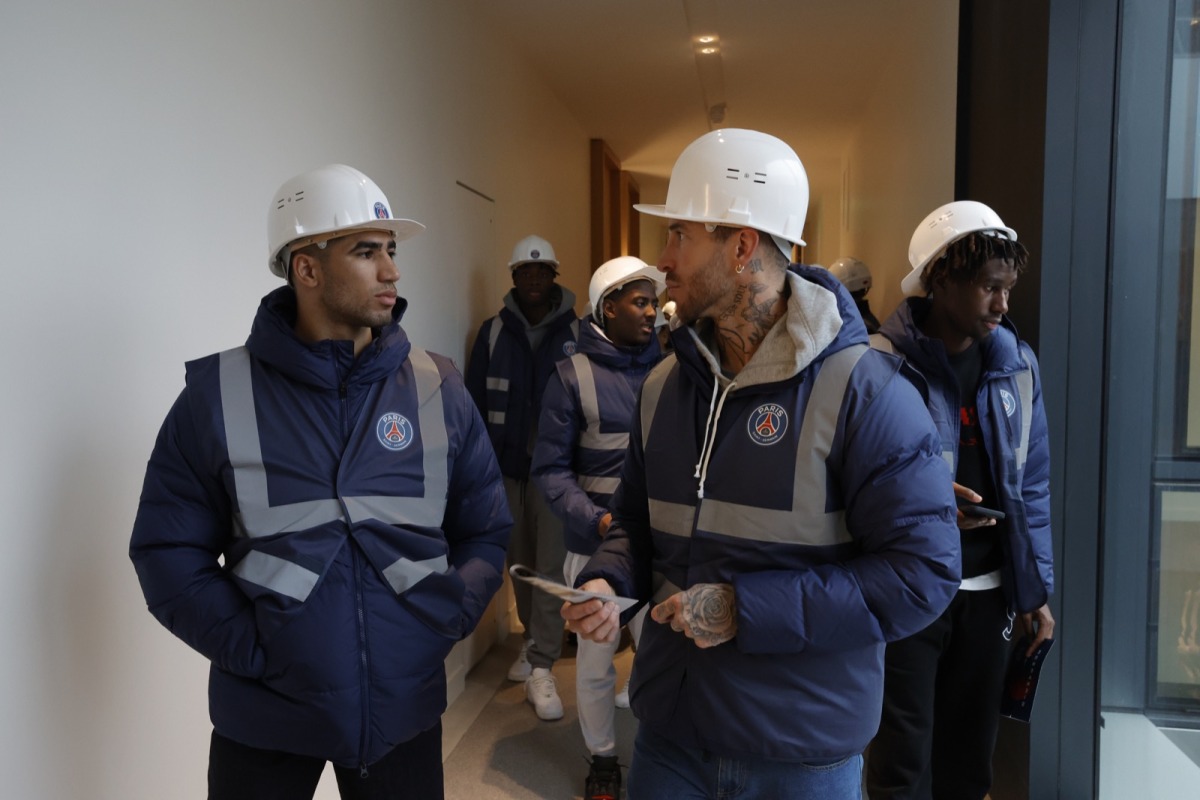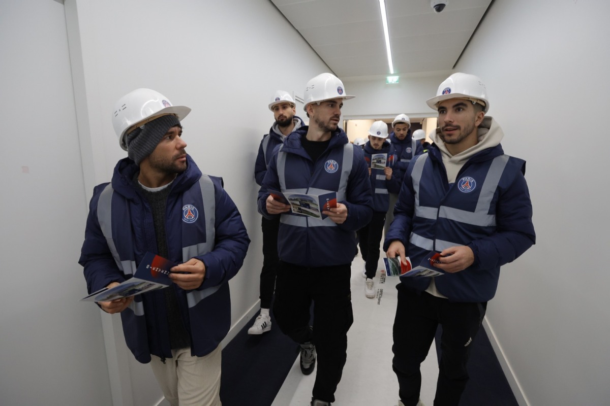 The players and staff were able to see the layout of the site, which traces the path from youth to elite level, and look around the professional players' building, designed by internationally renowned architects Wilmotte, as well as the pitches, which are cared for in exactly the same way as the Parc des Princes and on which the players will train from next summer.