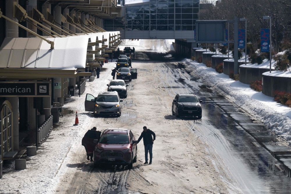 Cars in a pickup area as flights get delayed and cancelled at Ronald Reagan Washington National Airport, January 26, 2026. (Photo by Saul Loeb / AFP)