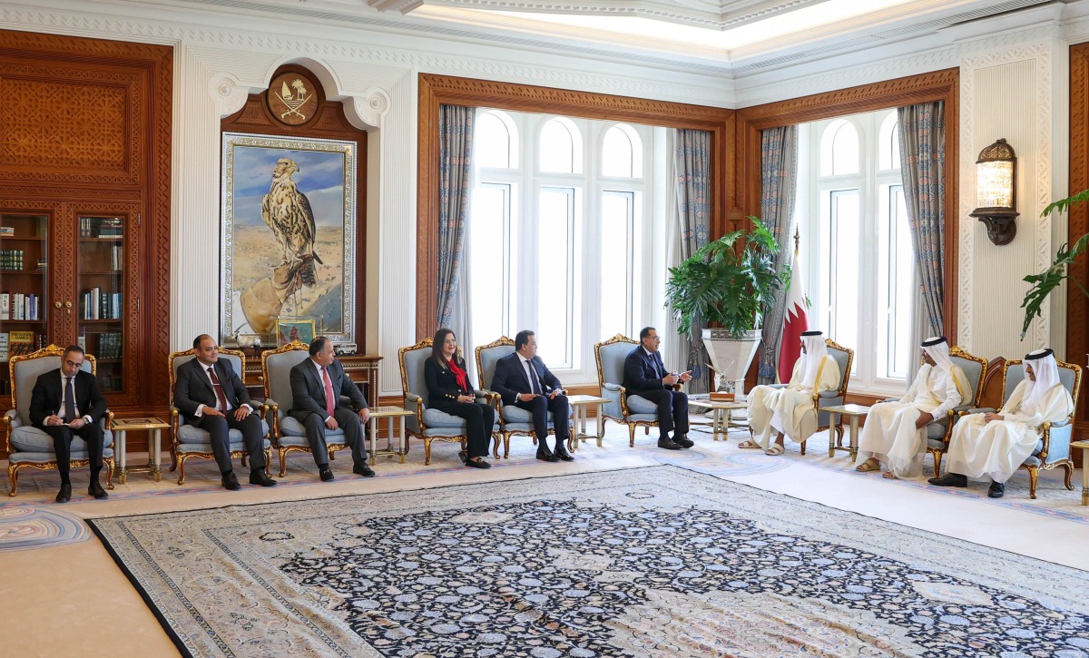 Doha: The Amir His Highness Sheikh Tamim bin Hamad Al Thani received in his office at the Amiri Diwan Monday morning, His Excellency Dr. Mostafa Kamal Madbouly, Prime Minister of Egypt, and the accompanying delegation, on the occasion of their visit to the country.
