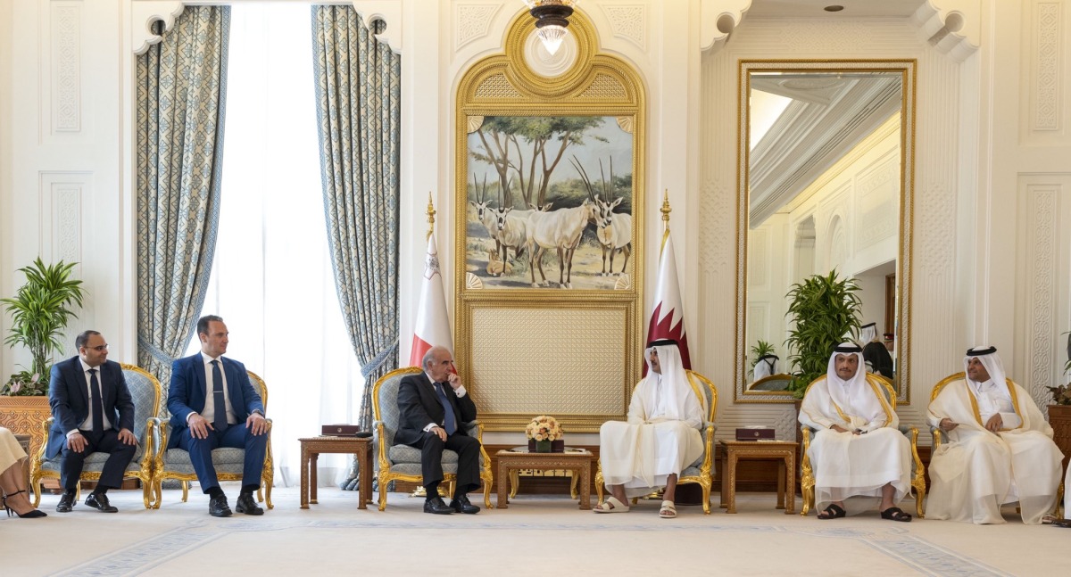 Doha: The Amir HH Sheikh Tamim bin Hamad Al-Thani and President of the Republic of Malta HE Dr. George Vella attended talks sessions in the Amri Diwan this morning.