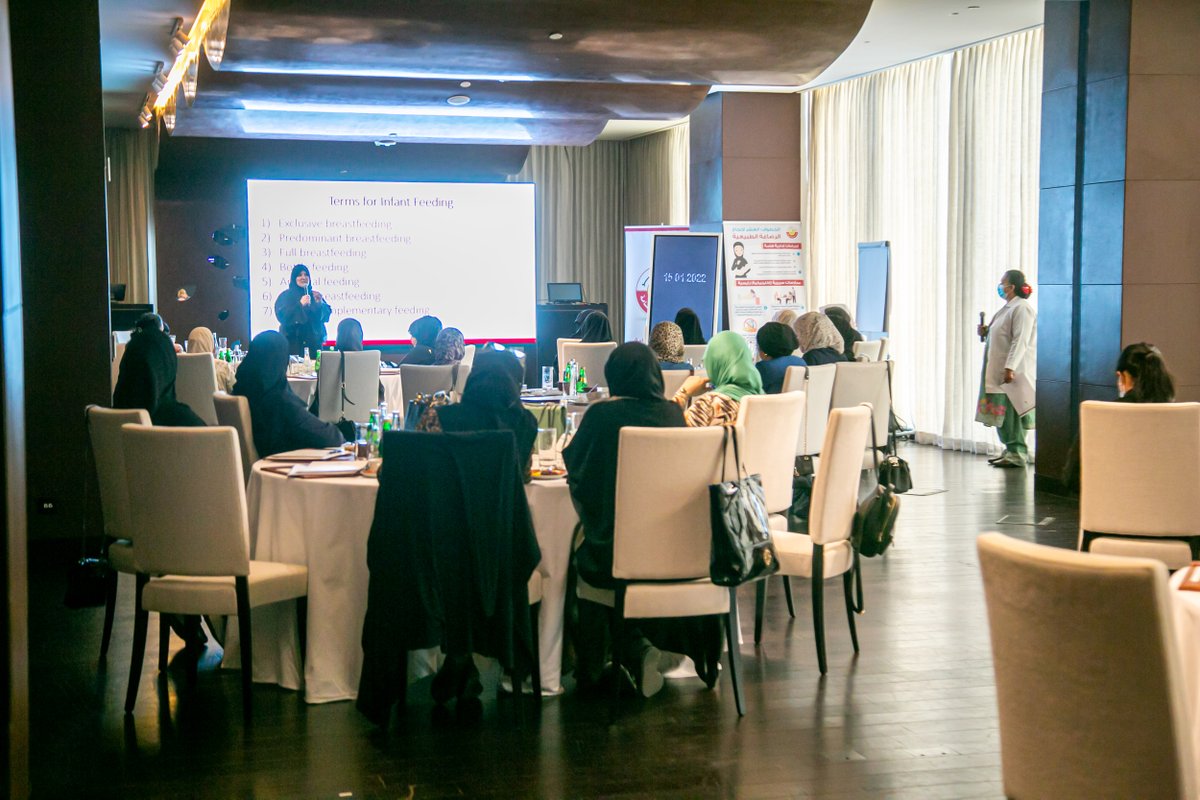 The workshop featured presentations, panel discussions, in addition to field trips for the participants to Women's Wellness and Research Center (WWRC) to apply the field training, where new mothers were interviewed and given the essential counselling and information on breastfeeding and offering the required support for them.