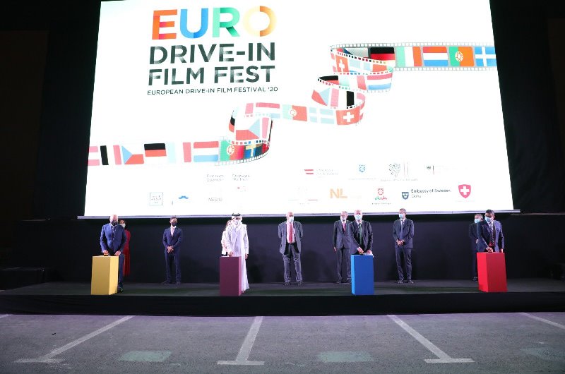 The Minister of Culture & Sports, H E Salah bin Ghanem Al Ali alongside nine European ambassadors and embassy representatives in Qatar, inaugurated the ‘The European Drive-In Film Festival’ yesterday at the Doha Festival City. The festival will run until November 28. Tickets for the event are already sold out, according to organisers. Ambassadors in attendance were Ambassador of Austria H E Karin Fichtinger-Grohe, Deputy Head of Mission of the Embassy of Belgium Céline Ganseman, Ambassador of Italy H E Alessandro Prunas, Ambassador of Germany H E Dr. Claudius Fischbach, Ambassador of Sweden H E Anders Bengtcén, Second Secretary of Embassy of the Netherlands Ilyaas Sherally, Ambassador of Portugal H E António Alves de Carvalho, and Ambassador of Switzerland H E Edgar Dörig. Also present was Assistant General Manager of Bawabat Al Shamal Real Estate Company Jihad Zarkout, and General Business Manager of Nestlé Qatar Zaher Abou Khamis. Swedish envoy, H E Anders Bengtcén said: “The European Drive-in Film Festival comes just a few days after the successful Ajyal Film Festival.