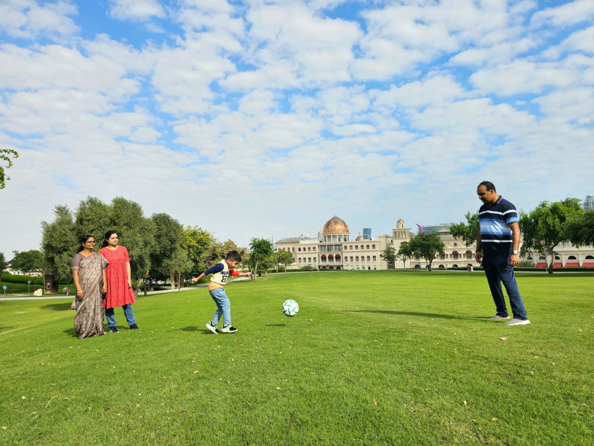 Together with his wife and mother-in-law, who is in Qatar for a short visit, they go to Katara Hills on weekends for about an hour of football fun. The vast green open field, according to Gopi, reminds him of their home in Kerala, India.