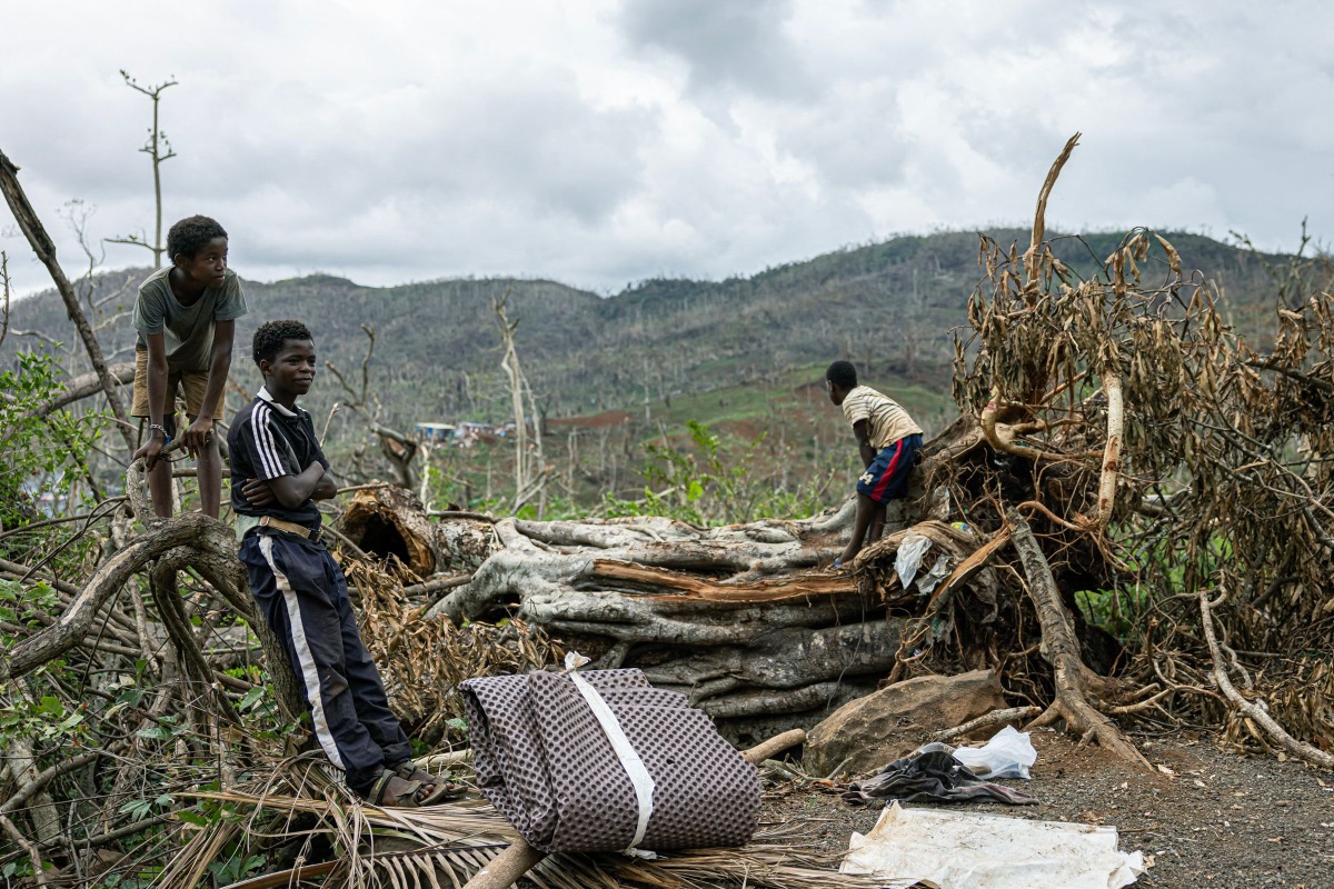 After barrelling into the archipelago at 200 kilometres per hour (125 mph), Cyclone Chido left behind scenes of desolation: Trees mowed down as far as the eye can see, sturdy tree trunks blown apart as if struck by mortars, the previous green of the foliage replaced by a sad brown.