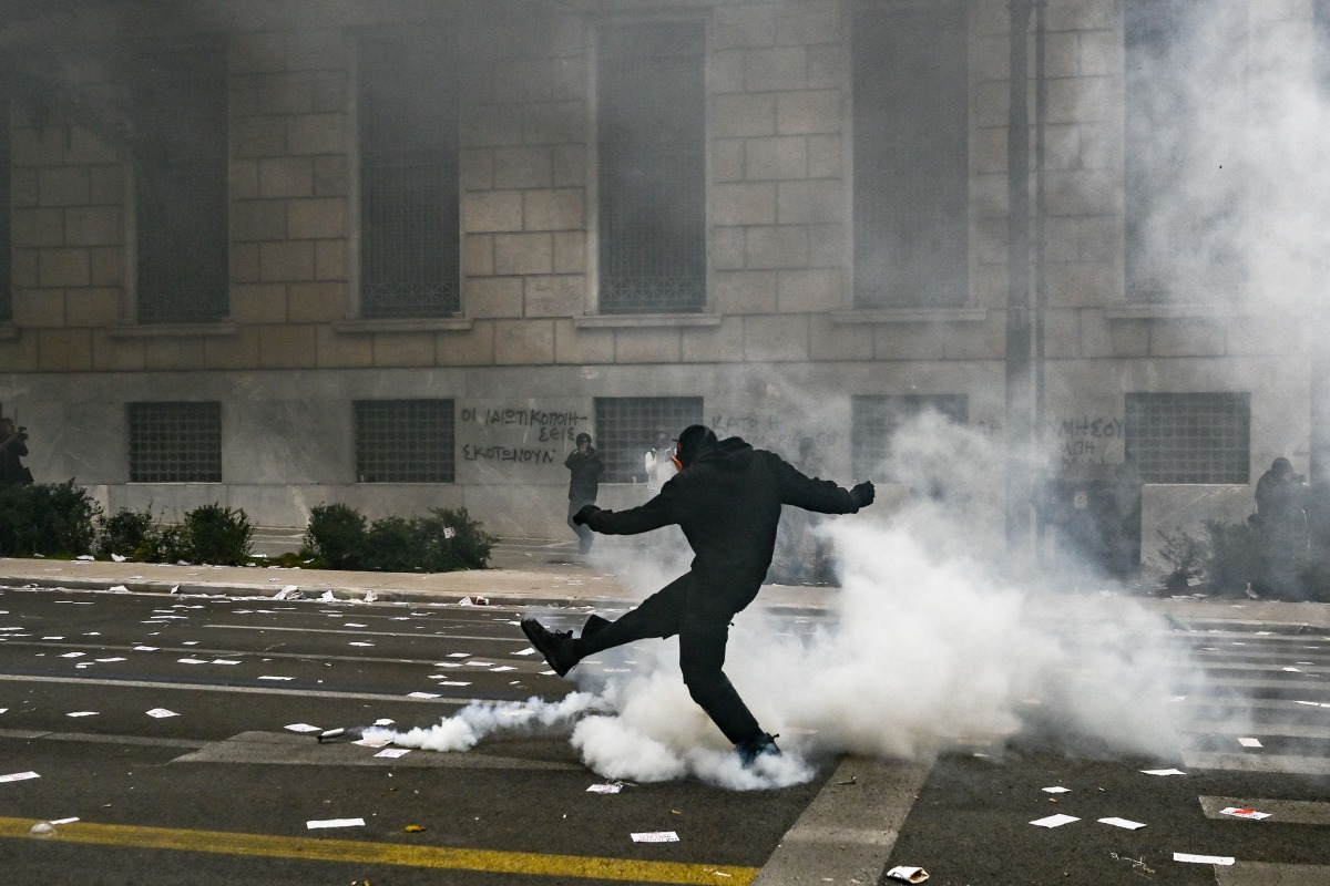 Athens: Violence on Friday marred a huge demonstration in Athens to mark the second anniversary of the country's worst rail tragedy, with firebomb-wielding youths clashing with riot police outside parliament.