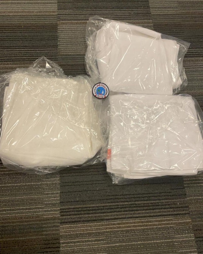 A passenger was attempting to bring in banned substances hidden inside his luggage and when an inspector opened the bag, he found a set of towels full of shabo weighing 2750 g and a set of wrapped pieces weighing 5000g, and 331.1g of hashish.