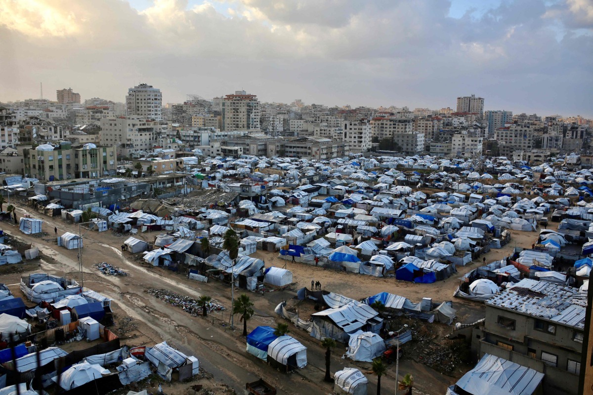 The tents of displaced Palestinians sheltering them from the harsh winter conditions are set-up on clear land in Gaza City, an December 28, 2025. (Photo by Omar AL-QATTAA / AFP)