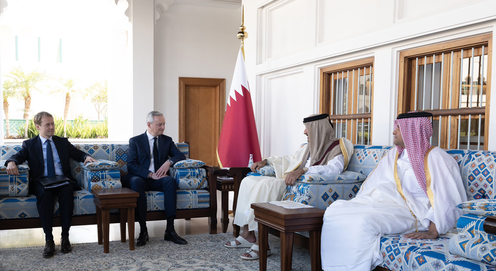 Doha: The Amir HH Sheikh Tamim bin Hamad Al Thani met at Sheikh Abdullah bin Jassim Majlis at the Amiri Diwan on Sunday with Minister of Economy, Finance and Industrial and Digital Sovereignty of the French Republic HE Bruno Le Maire and his accompanying delegation, on the occasion of visiting the country.