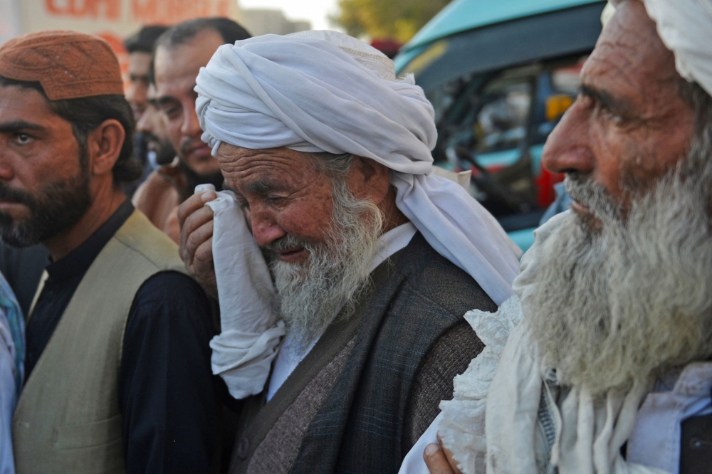 A relative mourns the death of a victim who died in a passenger bus accident at Bela, outside a hospital in Karachi on January 29, 2023. (Photo by RizwanTabassum /AFP)
