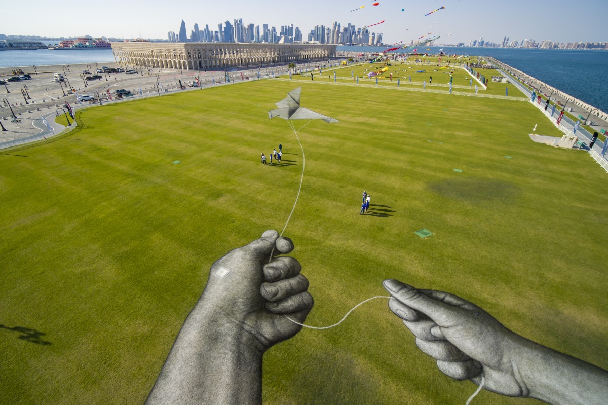 “This is my very first time in Qatar. And I love it. I think the people are very kind. We see the difference of culture, but at the same time we feel comfortable and very safe. This is one of the best experiences of my career, and I feel like I have a home away from home here in Qatar,” Saype, whose work often carries a profound message of togetherness and hope, added.