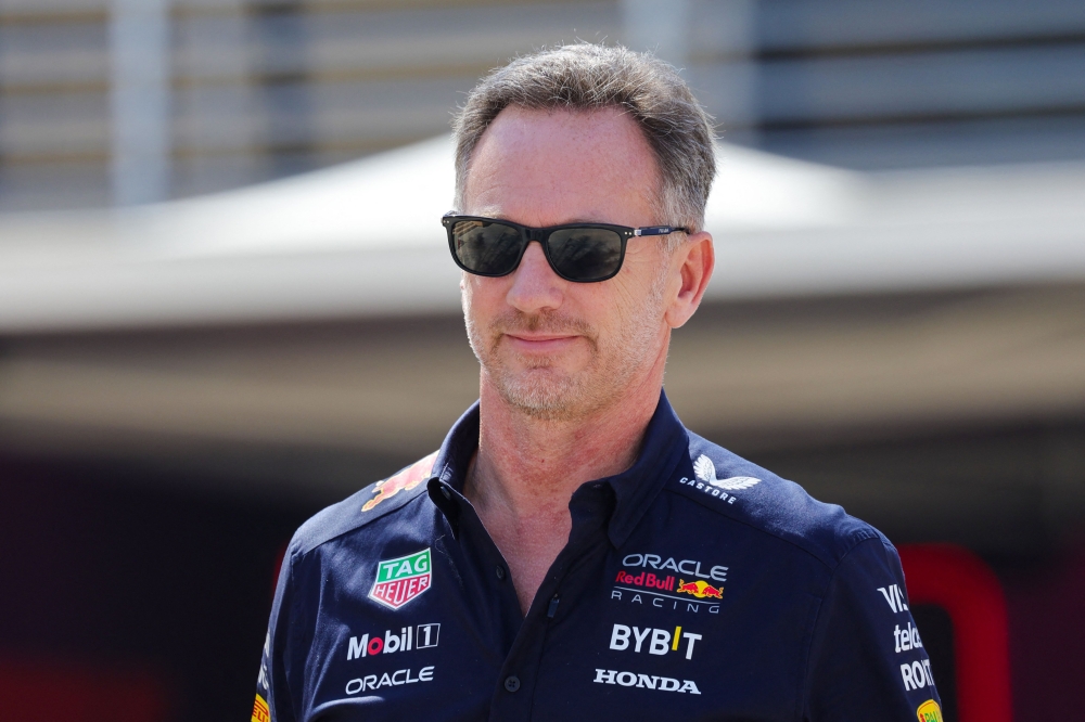 Red Bull Racing team principal Christian Horner arrives at the Bahrain International Circuit ahead of the first practice session of the Bahrain Formula One Grand Prix in Sakhir on February 29, 2024. (Photo by Giuseppe CACACE / AFP)