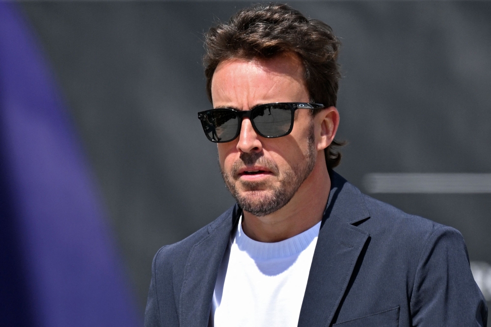 Aston Martin's Spanish driver Fernando Alonso arrives at the Bahrain International Circuit ahead of the Bahrain Formula One Grand Prix in Sakhir on February 28, 2024. (Photo by ANDREJ ISAKOVIC / AFP)