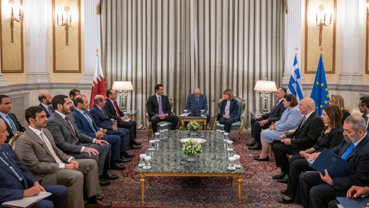 At the beginning of the meeting, Her Excellency the Greek President welcomed His Highness the Amir and the accompanying delegation, noting the great development witnessed in the relations of the two countries, and expressing her hope that this important visit of His Highness the Amir to Greece will push bilateral cooperation to the level to which the two friendly countries aspire.