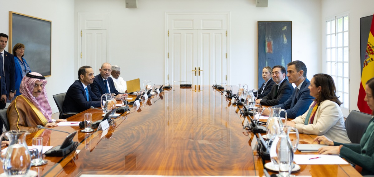 Madrid: Prime Minister and Minister of Foreign Affairs HE Sheikh Mohammed bin Abdulrahman bin Jassim Al Thani participated Wednesday in Madrid in the meeting of Prime Minister of the Kingdom of Spain HE Dr. Pedro Sanchez with the ministerial committee assigned by the extraordinary joint Arab-Islamic summit to mobilize international action to stop the war on Gaza.