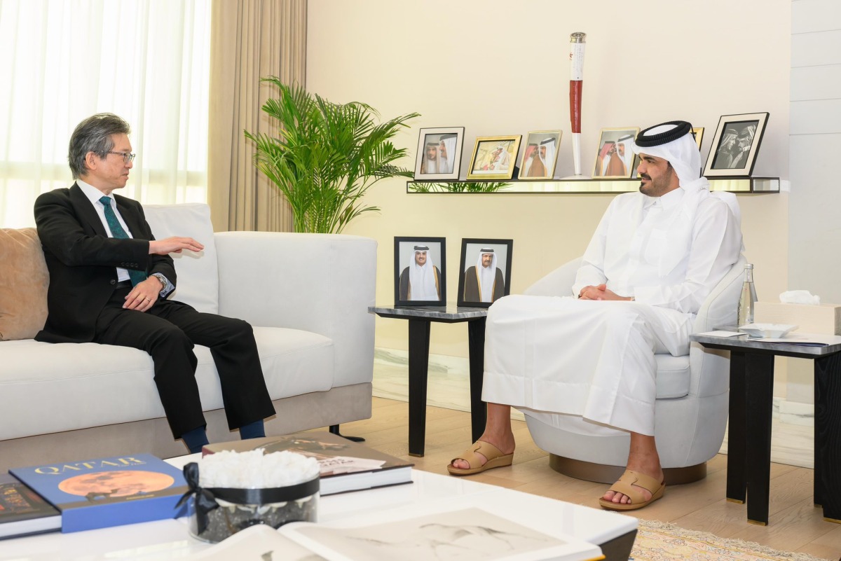 Doha, Qatar: President of the Qatar Olympic Committee (QOC) HE Sheikh Joaan bin Hamad Al-Thani met with Ambassador of Japan to the State of Qatar HE Naoto Hisajima on Thursday.
