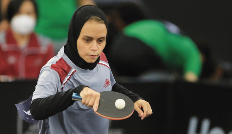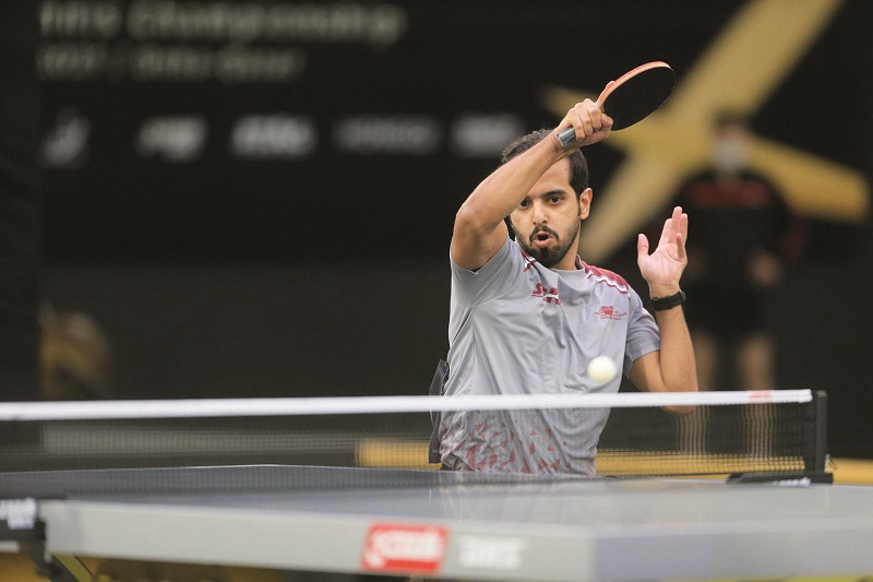 Qatar's Ahmad Khalil Al Mohannadi in action during his Asian Table Tennis Championships men's teams Group 3 match against United Arab Emirates at the Lusail Sports Hall yesterday.