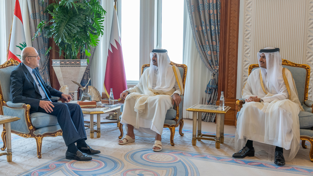 Doha, Qatar: The Amir HH Sheikh Tamim bin Hamad Al-Thani met at his Amiri Diwan office on Sunday with Caretaker Prime Minister of the Republic of Lebanon HE Najib Mikati, and the accompanying delegation, on the occasion of his visit to the country.