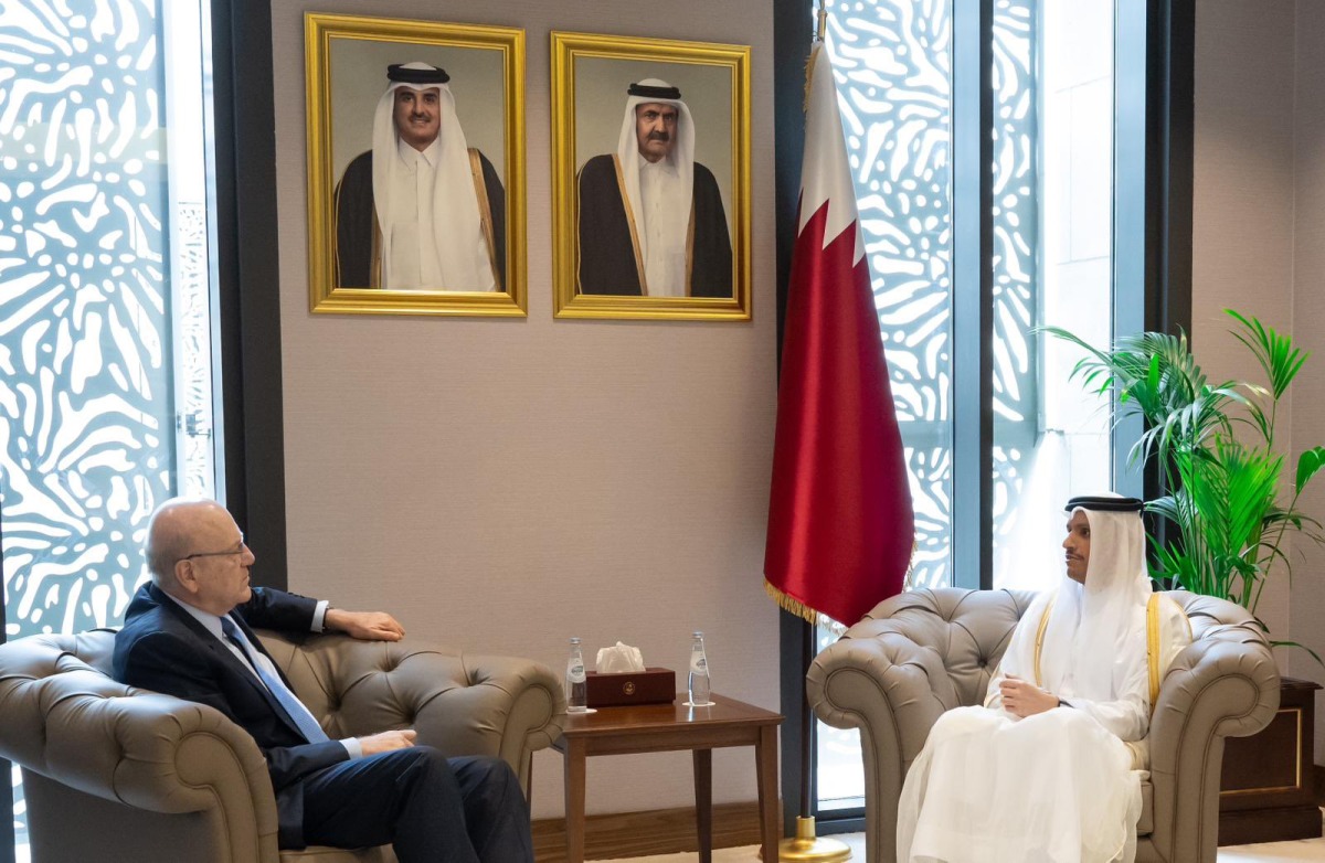 Doha, Qatar: Prime Minister and Minister of Foreign Affairs HE Sheikh Mohammed bin Abdulrahman bin Jassim Al Thani met Sunday at his office with Caretaker Prime Minister of the Republic of Lebanon HE Najib Mikati.
