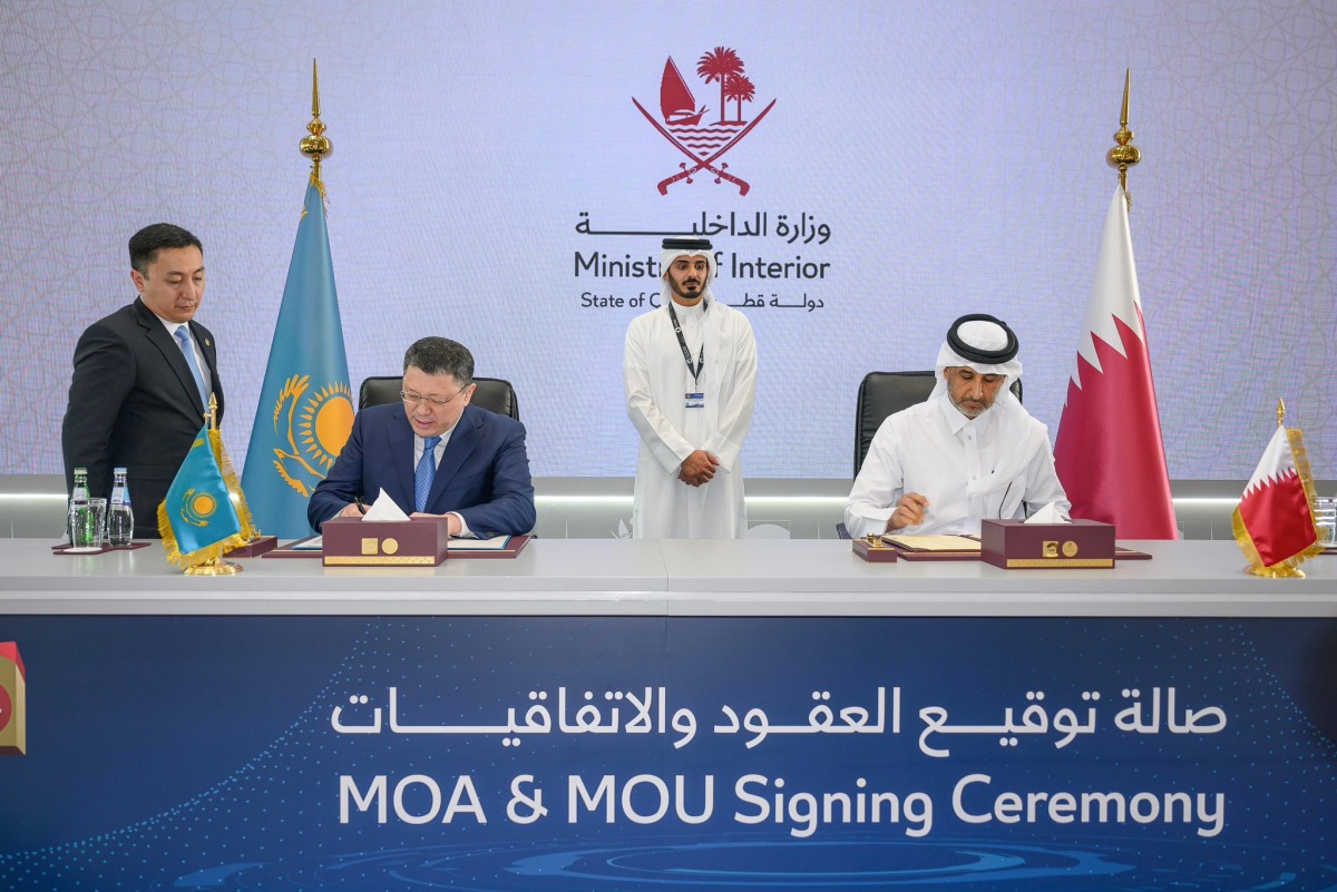The agreement was signed on the Qatari side by Minister of State for Interior Affairs HE Sheikh Abdulaziz bin Faisal bin Mohammed Al Thani, and on the Kazakh side by Minister of Internal Affairs HE Yerzhan Sadenov.