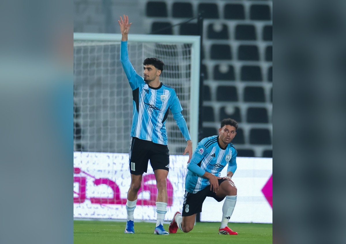 Yusuf Abdurisag (left) celebrates his goal against Al Shahania yesterday.