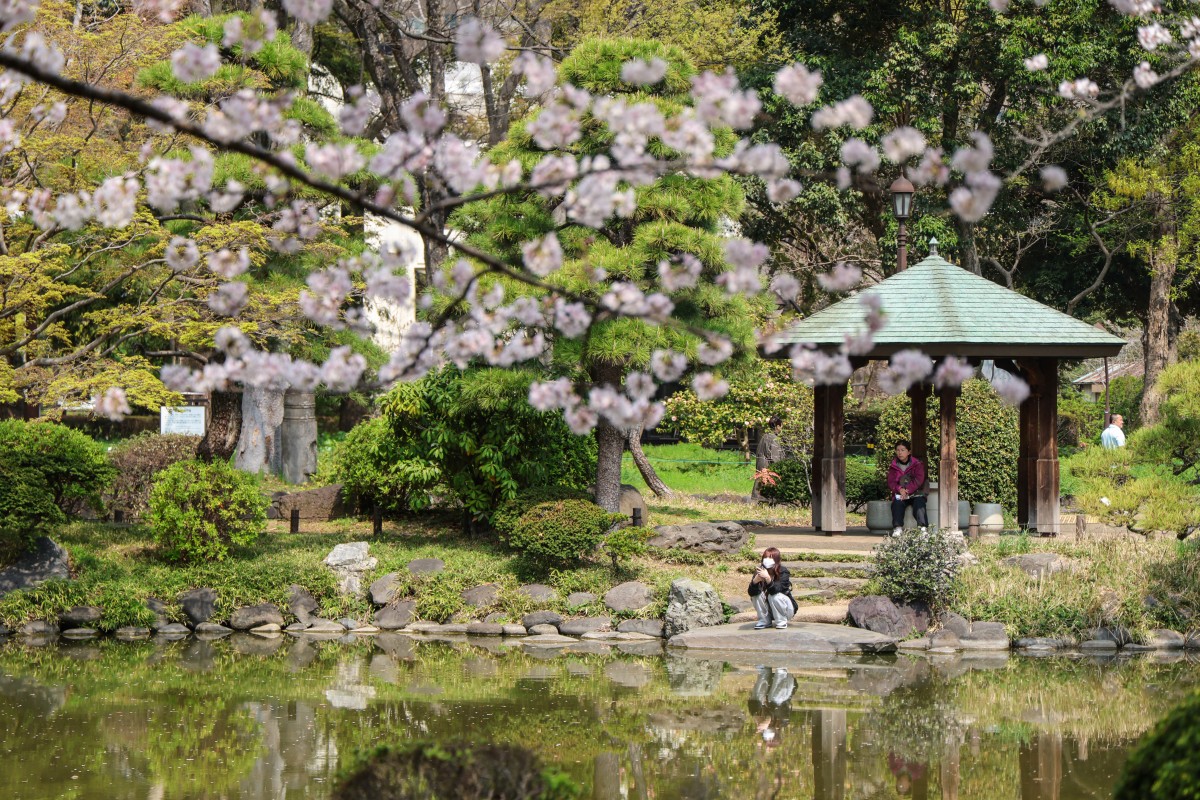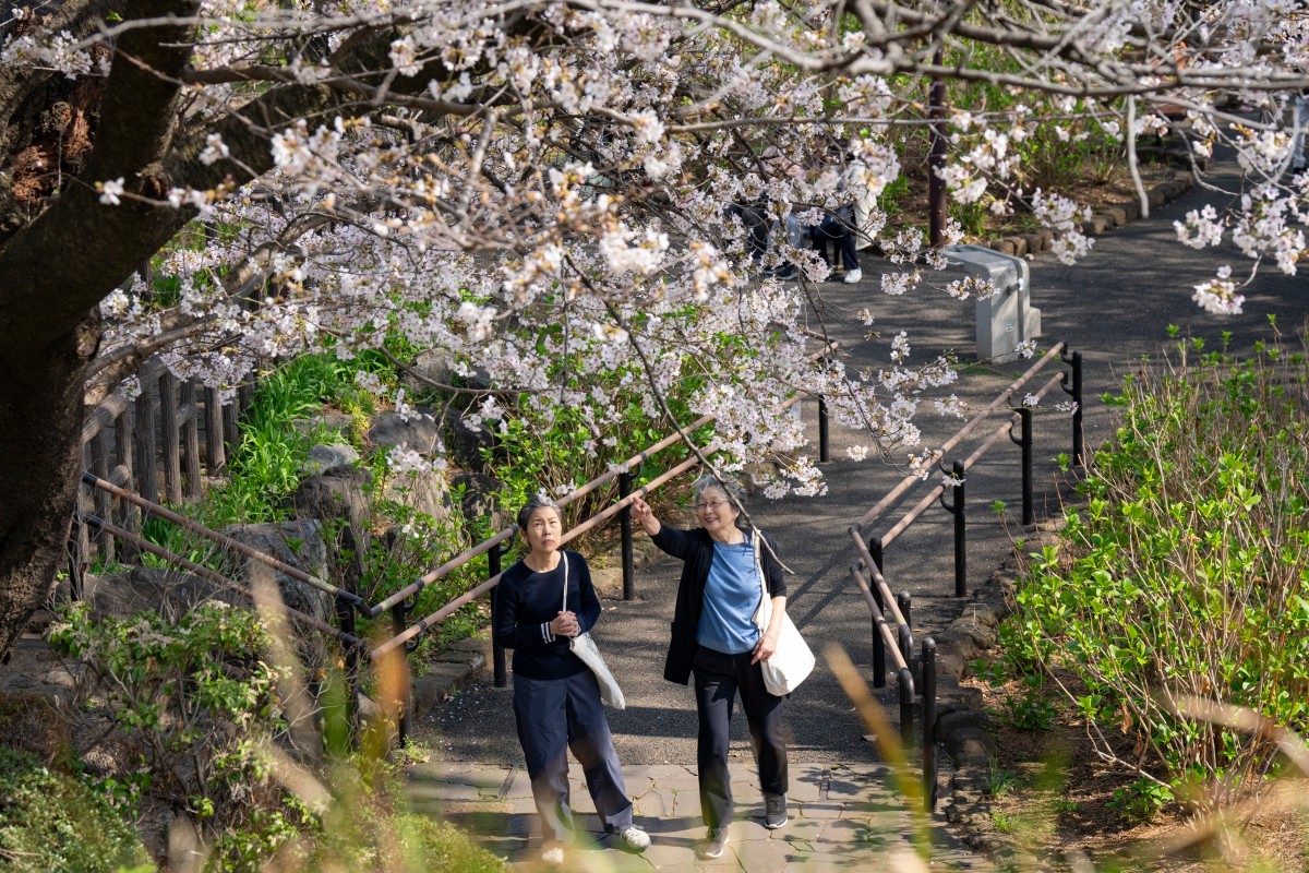 People visit a park in Tokyo on March 30, 2026. (Photo by Ludovic MARIN / AFP)
