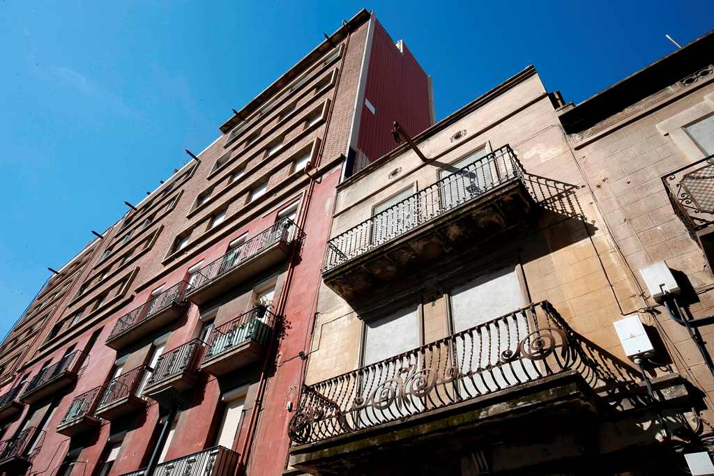 Barcelona: A wall of bricks and cement covers the window of a brand new apartment on the ground floor of a quaint building in Barceloneta, a trendy seaside neighbourhood in Barcelona.
