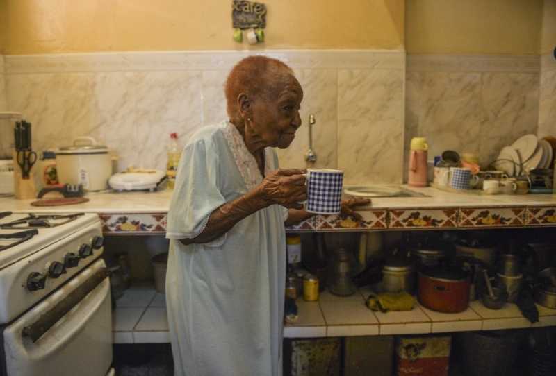 Cuban Rigoberta Santovenia, 102, walks in the kitchen at her house in Havana, on May 17, 2018. AFP / YAMIL LAGE
