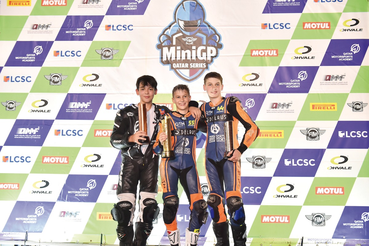 Petr Mayorov and Jake Franklin secured victories in the fourth round of the 2024 FIM MiniGP Qatar at the Lusail track on Saturday. Mayorov won Race 1 with a total time of 13:56.837 and a best lap of 55.197 seconds in the 15-lap event, where Ivan Maiorov finished close behind in second, just 0.233 seconds off. Franklin completed the podium, finishing 11.088 seconds behind Matorov.