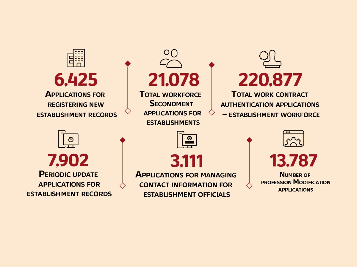 The statistical bulletin indicated that Labour Relations Department processed around 220,877 applications for contract authentication, with 21,078 requests submitted for labour secondment.