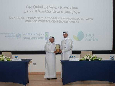 This MoU between the Tobacco Control Center and Naufar focuses on assisting the latter in supporting smokers (patients and staff) in Naufar by exchanging scientific activities, collaborating on research, and providing training for Naufar's medical staff on the latest methods for treating tobacco use.