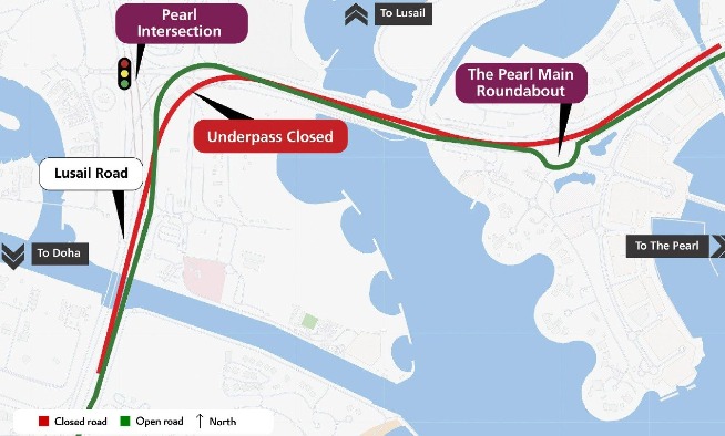 The Pearl Interchange tunnel for those coming from Lusail Road from south to north will be closed for three days, starting Tuesday August 1 to Thursday August 3, from 1am to 5am.
