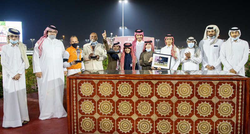 Qatar Racing and Equestrian Club (QREC) Racing Manager Abdulla Rashid Al Kubaisi presented trophies to the winners of the QR100,000 Dukhan Cup.