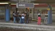 Picture shows investigators stand on a platform next to a Thalys train of French national railway operator SNCF at the main train station...