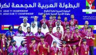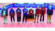 The podium winners - champions Qatar SC, runners-up Al Sadd SC and third-placed Al Arabi SC team members with the officials of Qatar...