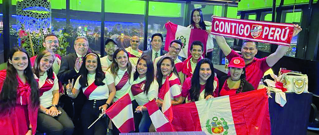 The Ambassador and the consul of Peru met with the Peruvian community in Doha, together with enthusiasm, to prepare for the next soccer play-off match of the Peruvian national team, which will take place on June 13, at the Ahmad bin Ali Stadium.